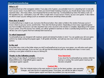 SaveGameBackup es una utilidad gratuita que crea copias de seguridad de los partidas de tus juegos. Además de detectar automáticamente la ruta de cada juego, SaveGameBackup crea archivos comprimidos y autoextraíbles, facilitando la recuperación inmediata de los datos.